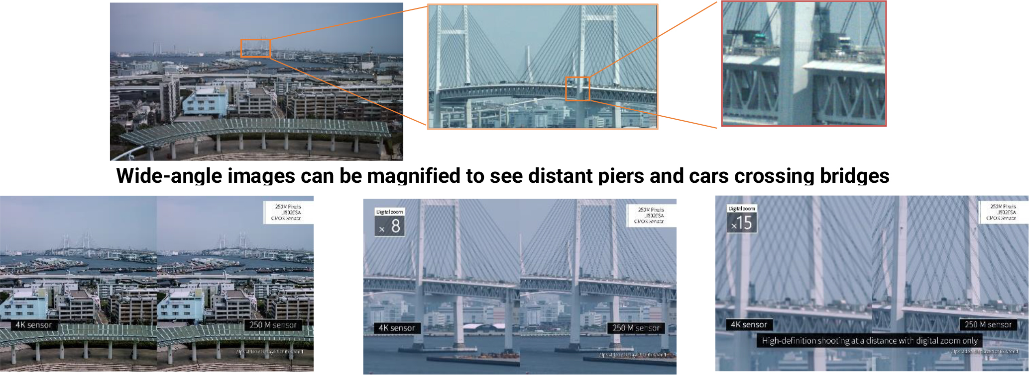 一次性广范围拍摄的同时能够放大任意领域, 将这种高像素影像应用于大范围监控的前景备受期待