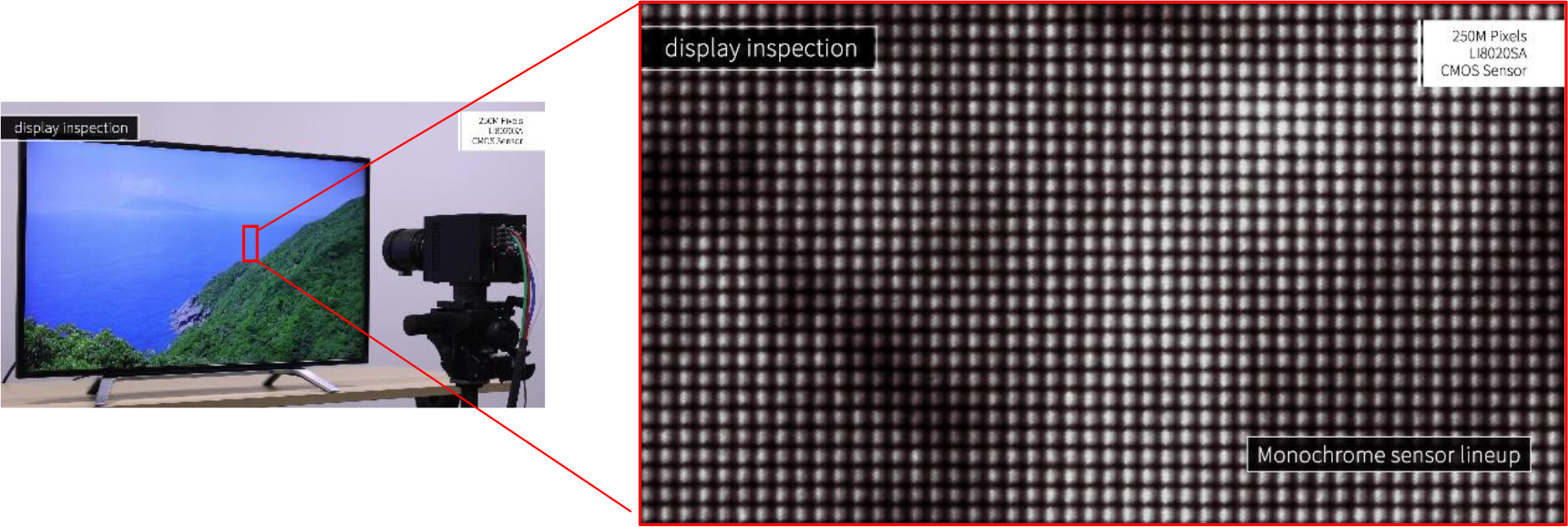 LI8020SAC 与 LI8020SAM 能以 2.5亿像素的高分辨率捕捉影像,此分辨率约为 Full HD(1920 x 1080 像素)的 125 倍、约为 4K(3840 x 2160 像素)的 30 倍,让使用者可裁切选取区域和数位放大或缩小影像,同时仍保持够高的分辨率。由于 CMOS 影像传感器的像素数与信号量增加,因此会导致信号延迟和时序中有微小差异等问题。不过,这些新传感器不仅具备约 2.5亿像素的高像素数,更搭载小型化电路与强化后的信号处理技术,可提供每秒约 1,250 百万像素的高像素读出速度。这让传感器即使在全像素读出期间,也能以大约每秒 5 FPS的速率捕捉高分辨率的影像。