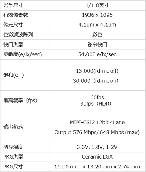 1/1.8" 210万 像素 HDR CMOS影像传感器