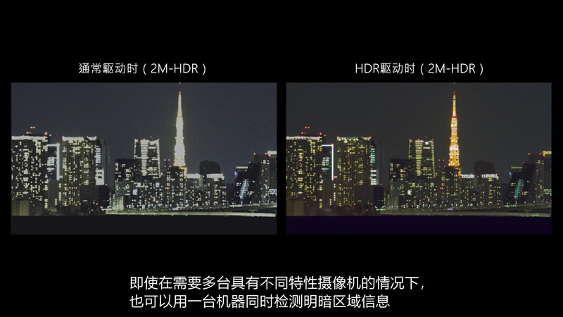 适用于网路和工业相机的高灵敏度CMOS影像传感器,可在 0.08 流明环境中进行 Full-HD 彩色视讯撷取。 1.8"英寸LI7050SAC 搭载约 210 万有效像素 (1936 x 1096)、每侧像素间距 4.1 μm、帧速率达 60 fps(执行 HDR 驱动时为 30 fps)并采用 MIPI CSI-2 接口。新开发的LI7050 CMOS影像传感器配备HDR功能、可在低噪音水平下实现120 dB 的宽动态范围。即使在正常驱动操作中、传感器也能达到 75 dB 的动态范围、比传统数字传感器的动态范围要大。通过结合高灵敏度和HDR功能, 实现同时检测亮度差距大的明暗区域信息。即使在需要多台具有不同特性摄像机的情况下, 也可以用一台机器同时检测明暗区域信息。
