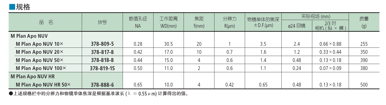 紫外物镜明视场用近紫外区校正物镜 M Plan Apo NUV / M Plan Apo NUV HR