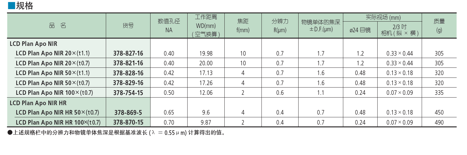 红外物镜明视场用液晶近红外区校正物镜 LCD Plan Apo NIR