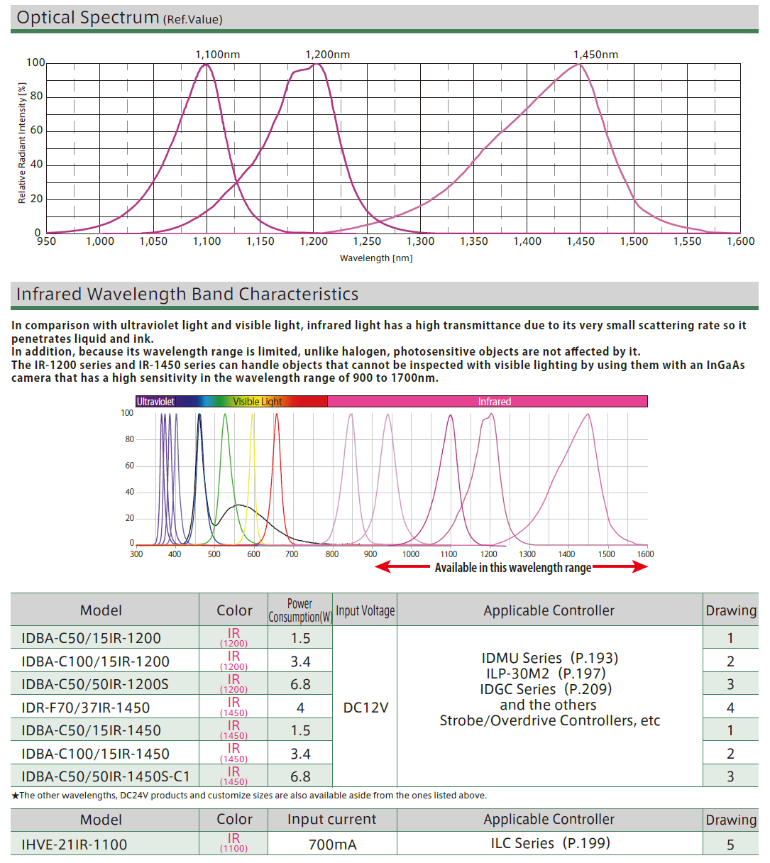 例如直接条形照明(IDBA‑C 系列)、直接环形照明 (IDR 系列)、平面直接环形照明 (IDR‑F 系列) 和低角度直接环形照明 (IDR‑LA系列)、同轴点光源照明 (IHVE 系列)以及各种其他选项以满足特定要求。