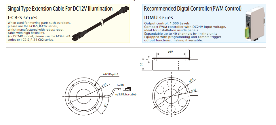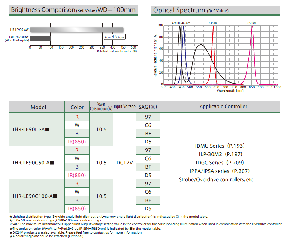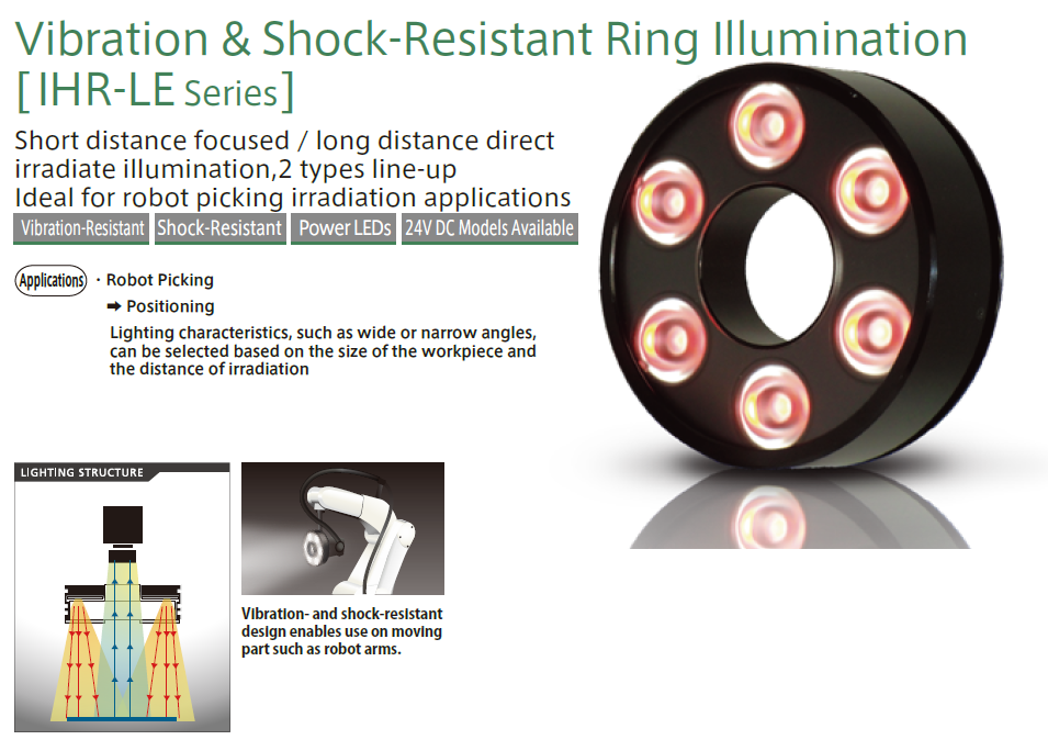 短距离聚焦/长距离直射照明 振动&抗冲击环形照明 IHR‑LE