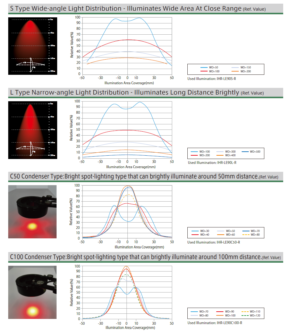 短距离聚焦/长距离直射照明,2种排列